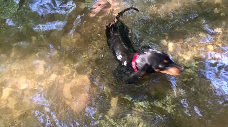 Als Desi 4 Monate alt war, durfte sie im Rahmen einer Prüfungsvorbereitung eine Schweissfährte ausarbeiten, die eigentlich für einen Prüfungsanwärter gelegt wurde. Mit Bravour hat Desi die Fährte "Tröpfchen für Tröpfchen" gearbeitet, und hätte die 100 Punkte bekommen. Wir waren begeistert, und auch der Vorstand der Sektion Salzburg war begeistert von ihrem Talent.